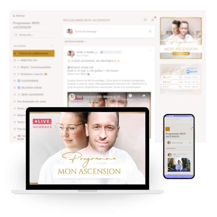 Voici notre plateforme dédiée au PROGRAMME «Mon Ascension» et nos SOINS DE 30 JOURS.