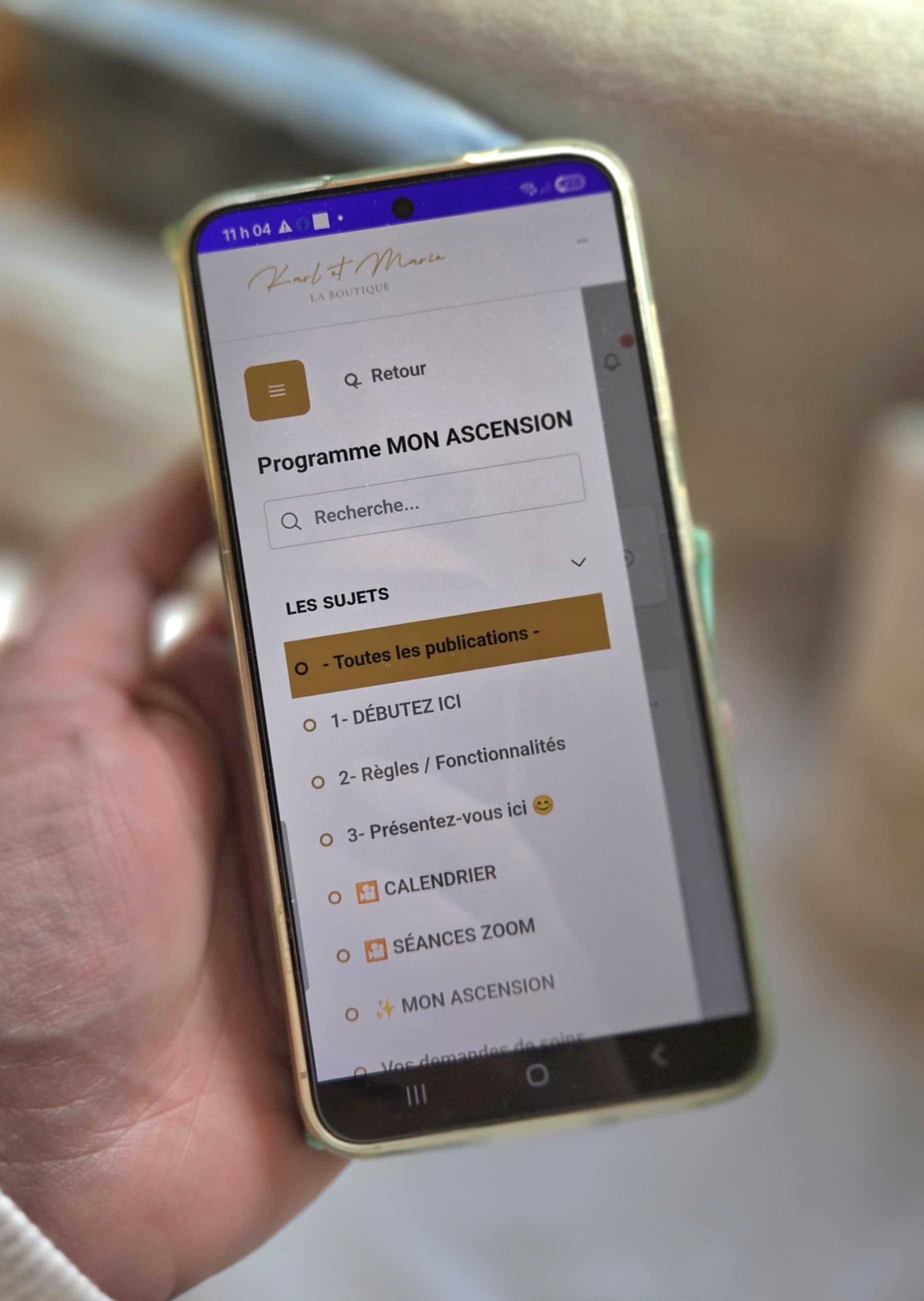 Ce programme en ligne, proposé sous forme d’abonnement mensuel, vous donne un accès immédiat à une plateforme privée, disponible à tout moment et depuis n’importe quel appareil — téléphone, tablette ou ordinateur.