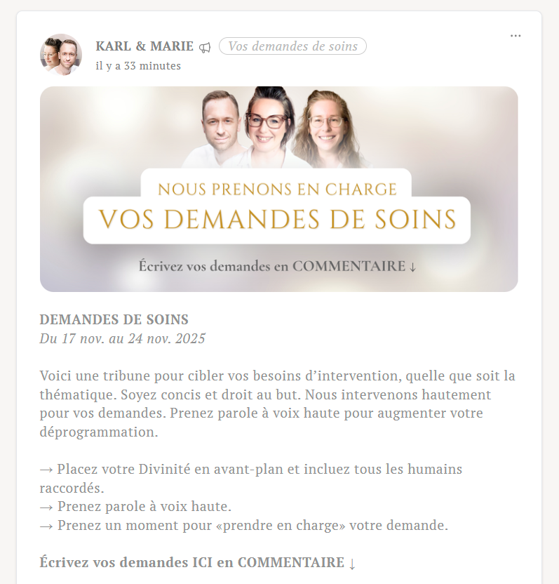 Ce programme complète les vidéos proposées sur notre chaîne YouTube. Il s'agit d'un espace de soutien dédié à la pratique régulière, réunissant des membres engagés activement pour l'Ascension.